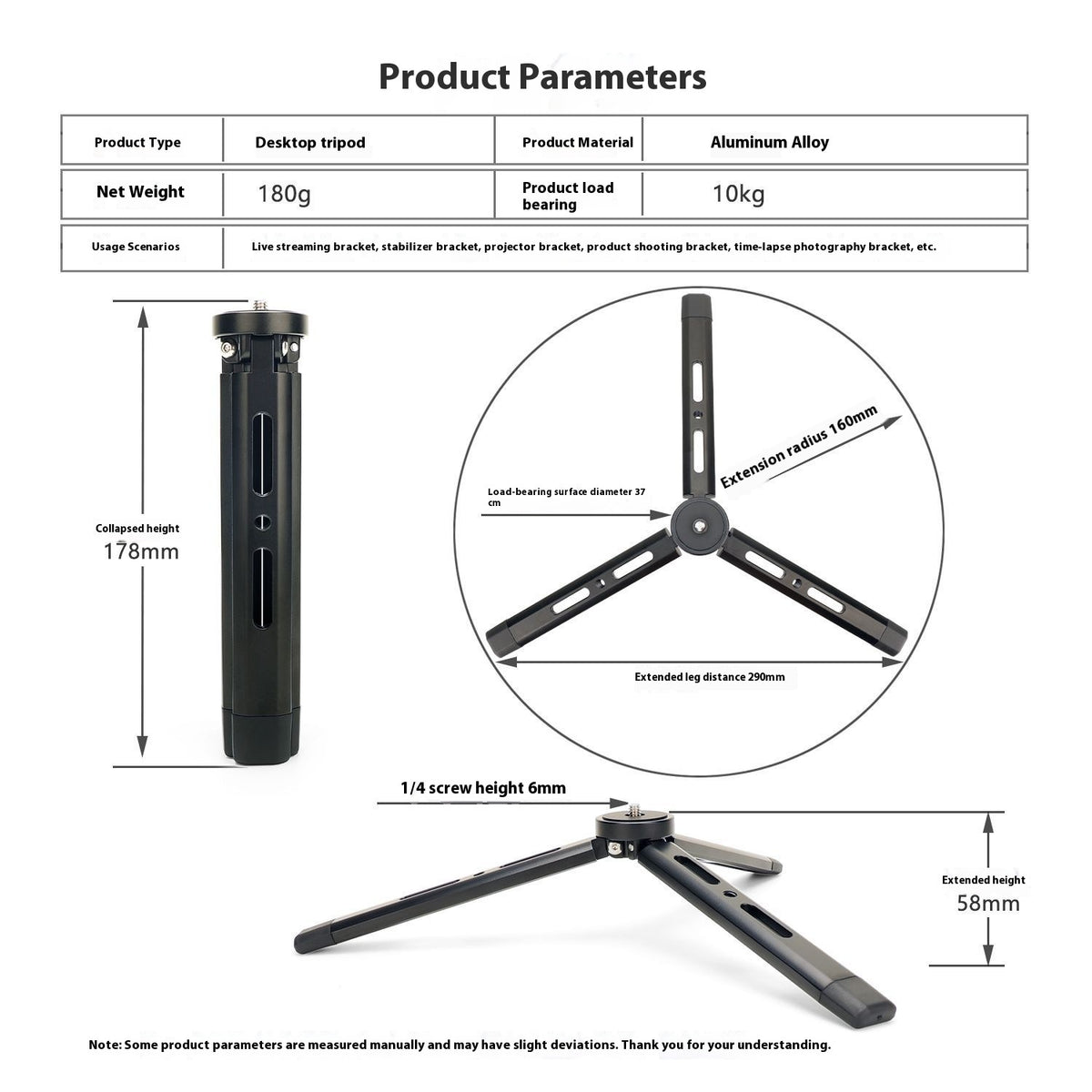 Product information: Load-bearing: 6-10kg Color: 1/4 with screws, 3/8 with screws, M10 with screws Material: aluminum alloy Product Size: 18.5cm * 4.2cm